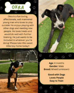 On top of loving you unconditionally, a dog adopted from Poochie’s comes with some free stuff!  They get 3 months of Dog Park Membership from Poochie’s Park and a free Health Exam from Black Creek Veterinarians.
