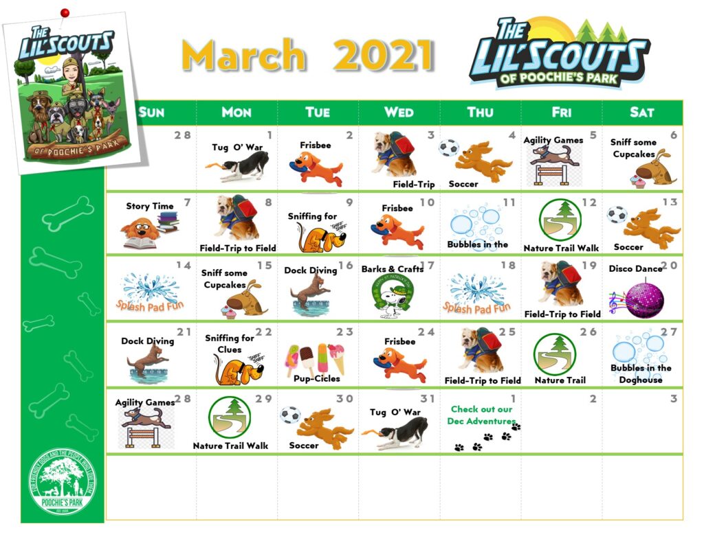 With each new skill your pooch is signed up for you will receive a handout created by our trainers to help you practice at home what we are teaching him or her here at Poochie’s.